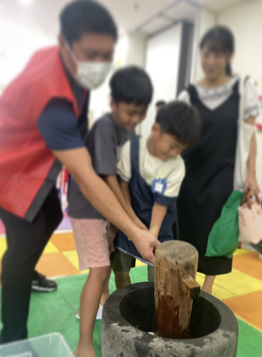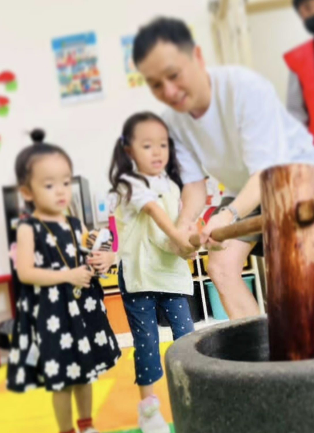 2026年がスタートしました! 本年も子ども達の安全を第一に、楽しい毎日を過ごしていきます^ ^ さて、1月10日(土)幼稚園でおもちつきがありました。 餅米やおもちの成り立ちや歴史を紙芝居で見て、手遊びをしお父さん・お母さんと力を合わせておもちをつく子ども達☆ 杵はとっても重たいけど、皆で一緒なら大丈夫だね♫ 味付けはのりと醤油、大根おろしにおぞうに、きなこにあんこと好きな味をチョイスして、皆でお腹いーっぱい食べました◡̈⃝︎⋆︎*